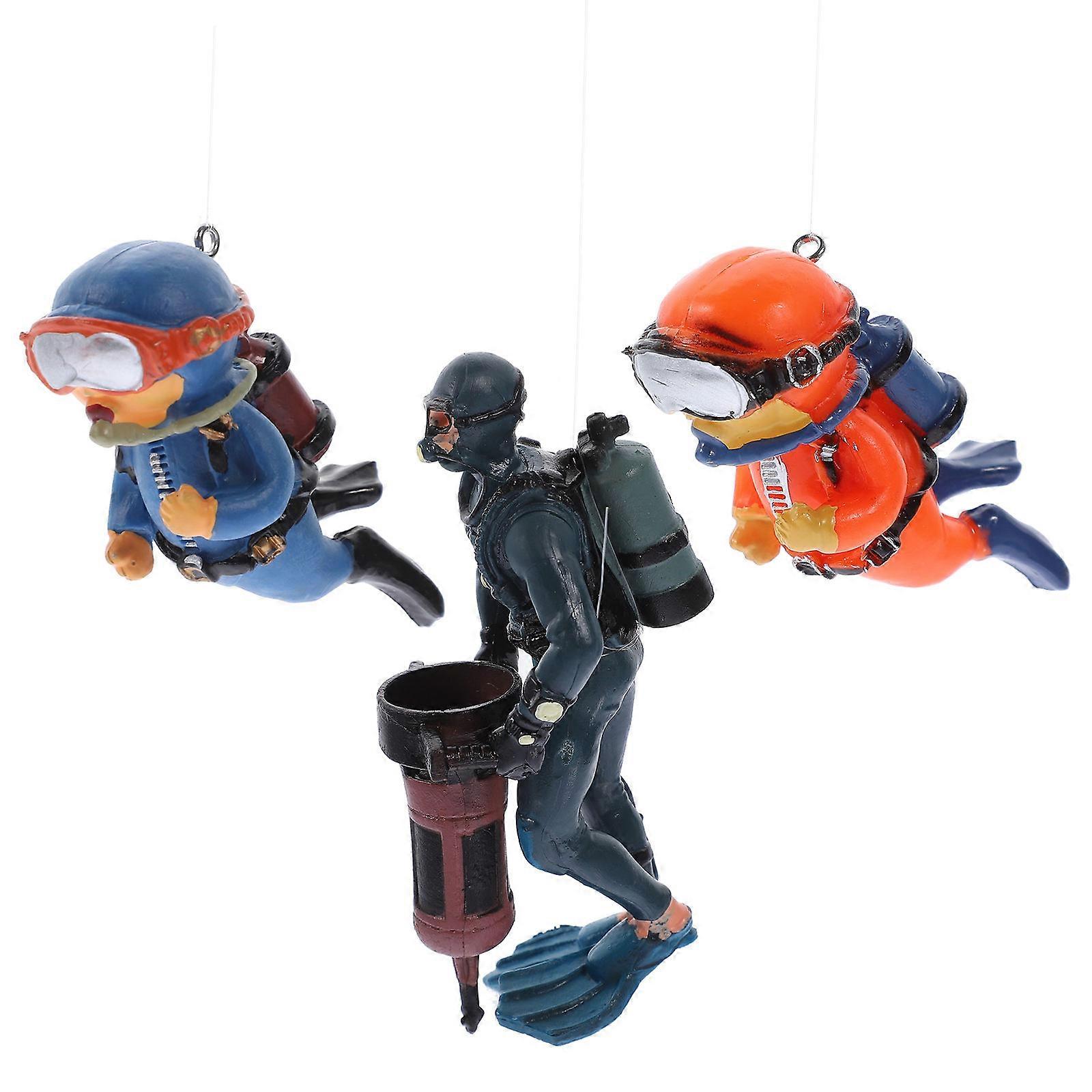 3pcs Floating Diver Ornament for Aquarium Decor Lifelike Cartoon Design, Bright Colors, Fish Tank Landscaping Decoration