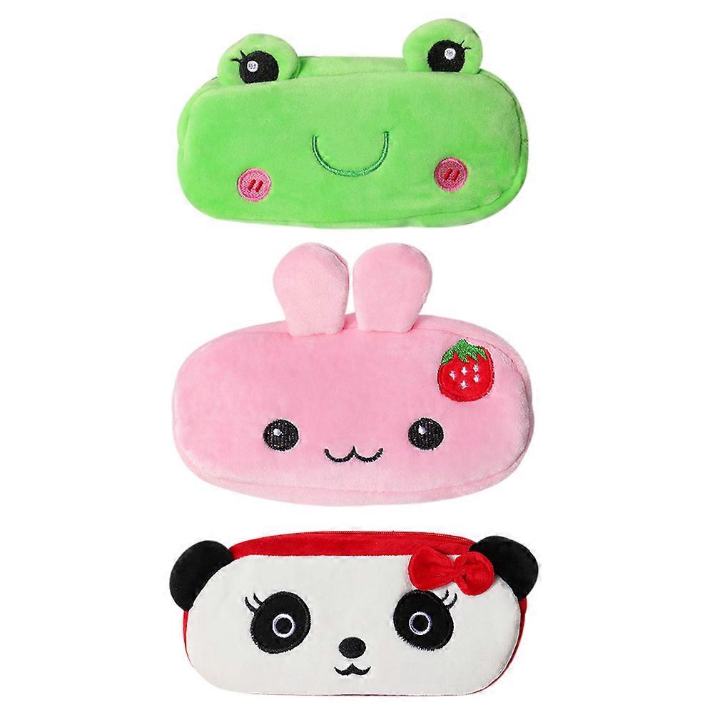 3pcs Cute Animal Pencil Cases for School Supplies – Portable Bear, Frog & Strawberry Bunny Design Stationery Storage Bags for Teens