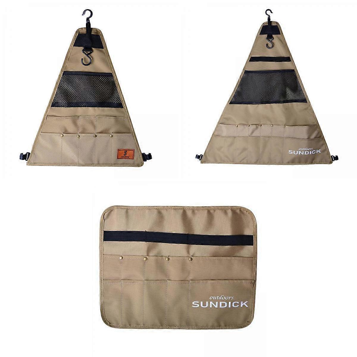 Description: 900D Oxford fabric picnic barbecue BBQ tableware storage bag portable outdoor camping cookware hanging bag Can store all kinds of tableware, cookware, condiment bottles and other small outdoor objects, neatly stored. Can also be used at home kitchen or to storage tools at garage. Multi - grid reasonable layout, can place all kinds of tableware. Other items shown in the picture are not included. Specification: Material: 900D Oxford Cloth Color: Kahki Size: approx. Triangle Large: 55x59cm/21.65x23.23inch(WxH) Triangle Small: 33.5x39cm/13.2x15.35inch(WxH) Rectangular: 37x30cm/14.57x11.8inch(LxW) Package Includes: 3 Piece Outdoor Picnic Tableware Storage Bag Note: Color might be slightly different due to the color calibration of each individual monitor. Please allow slightly measuring deviation due to manual measurement.