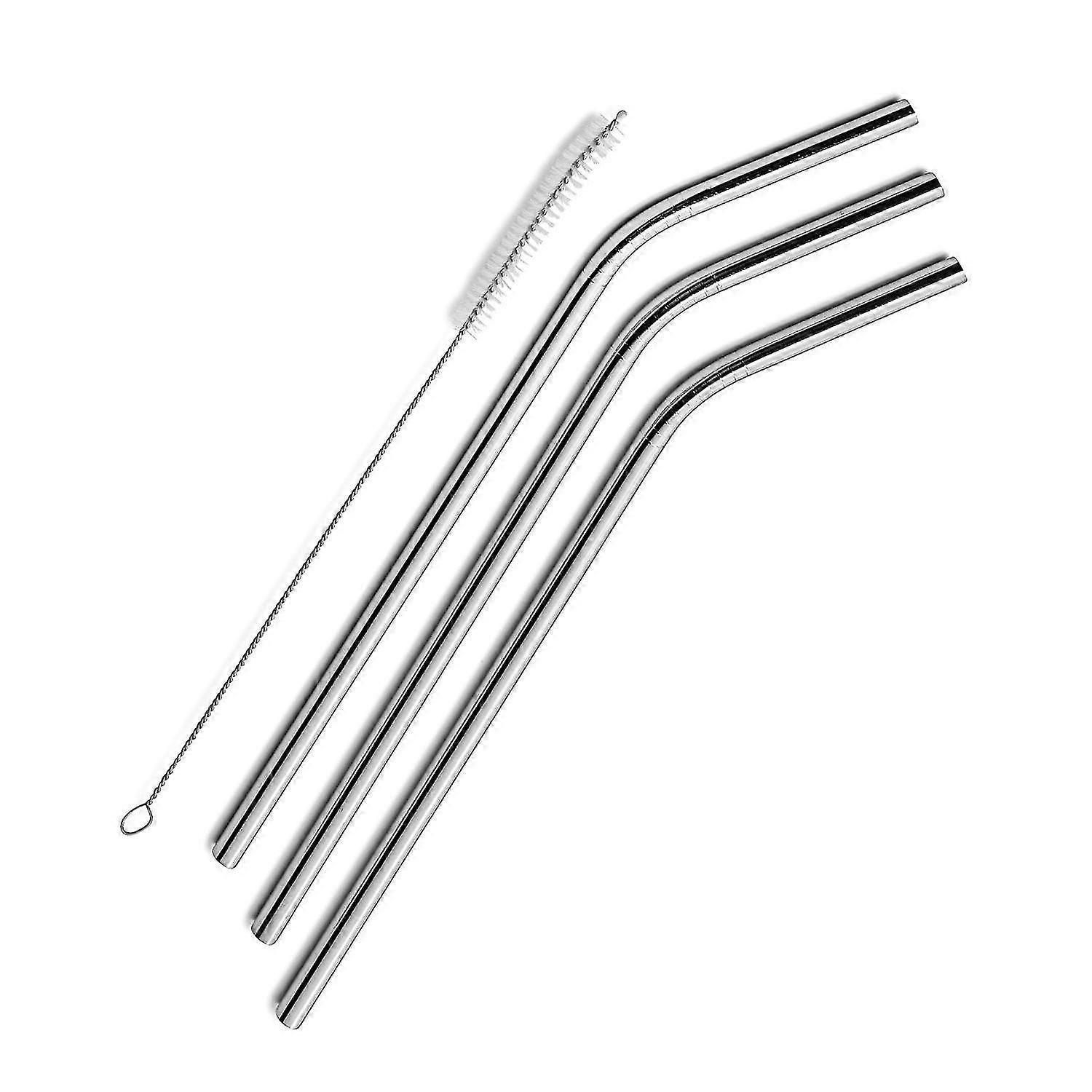 3 Pcs Reusable Stainless Steel Metal Drinking Straw Reusable Straws + 1 Cleaner Brush Kit