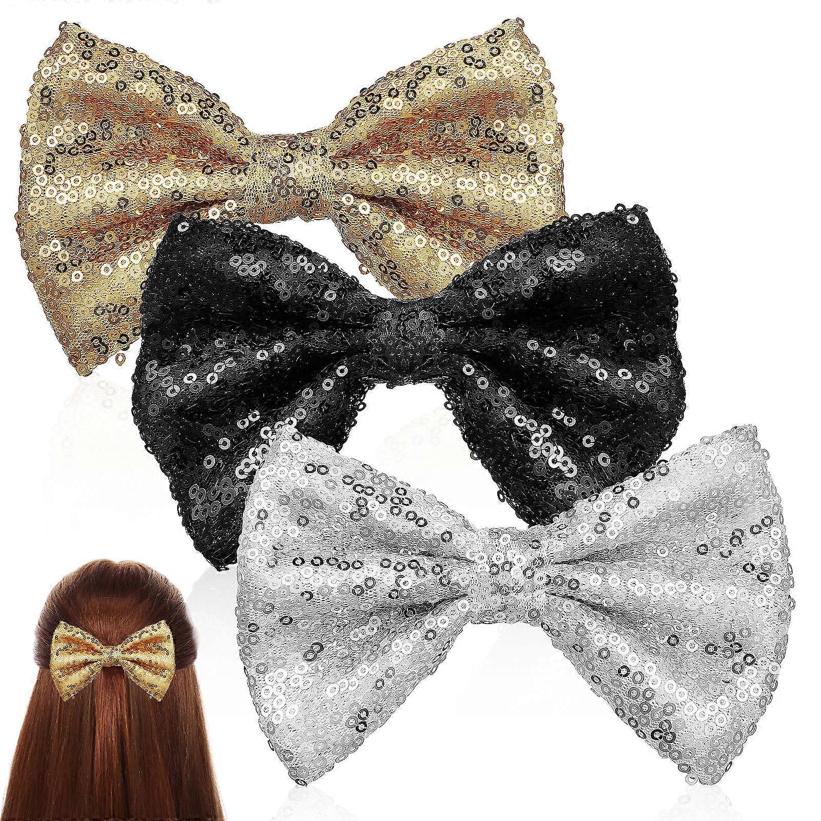 3pcs Sequin Hair Bows with Non Slip Clips, Vibrant Colorful Hair Barrettes for Women and Teens