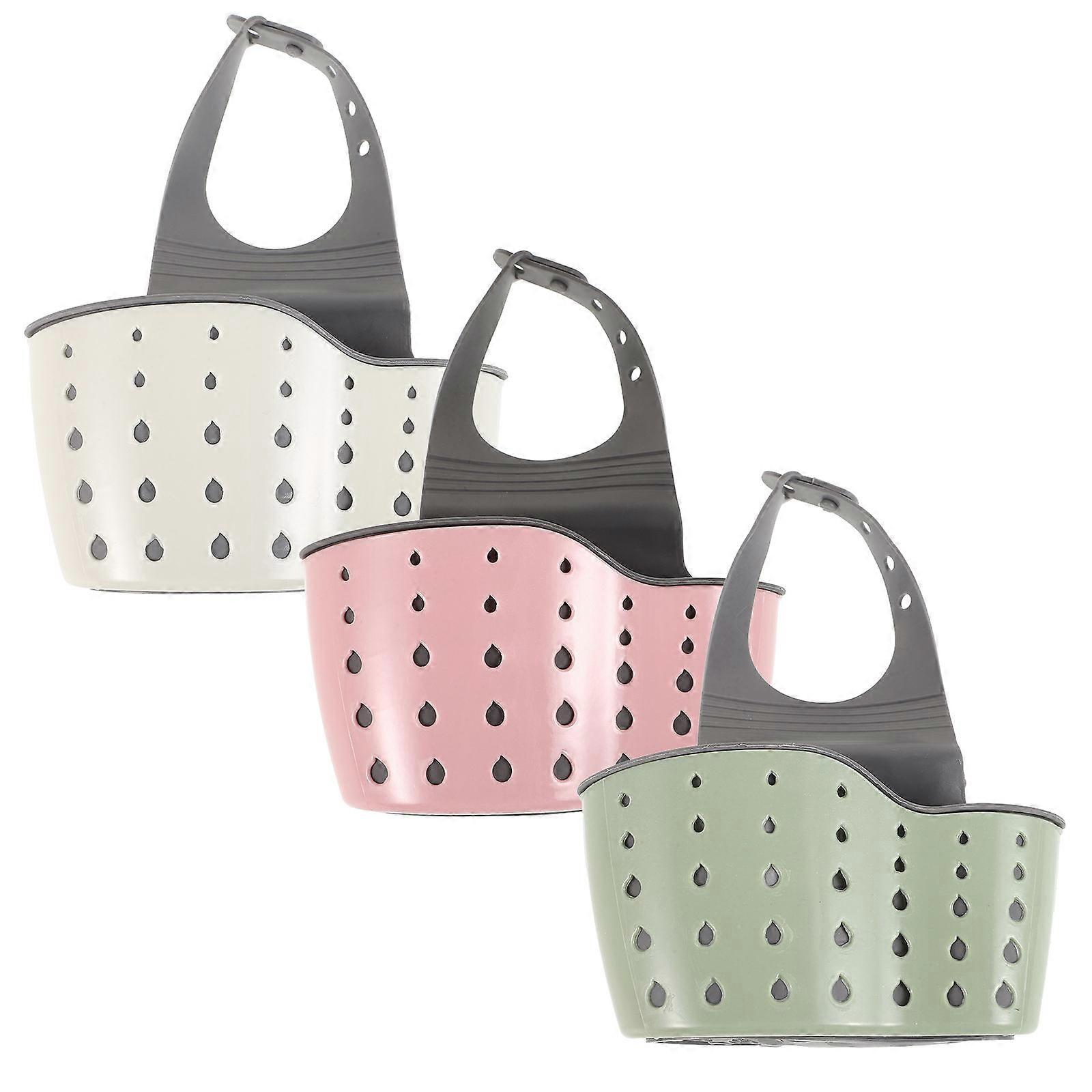 3pcs Double Layer Kitchen Sink Drain Shelf Hanging Basket for Soap Sponge Storage Space Saving Organizer for Kitchen Bathroom Green Beige Pink