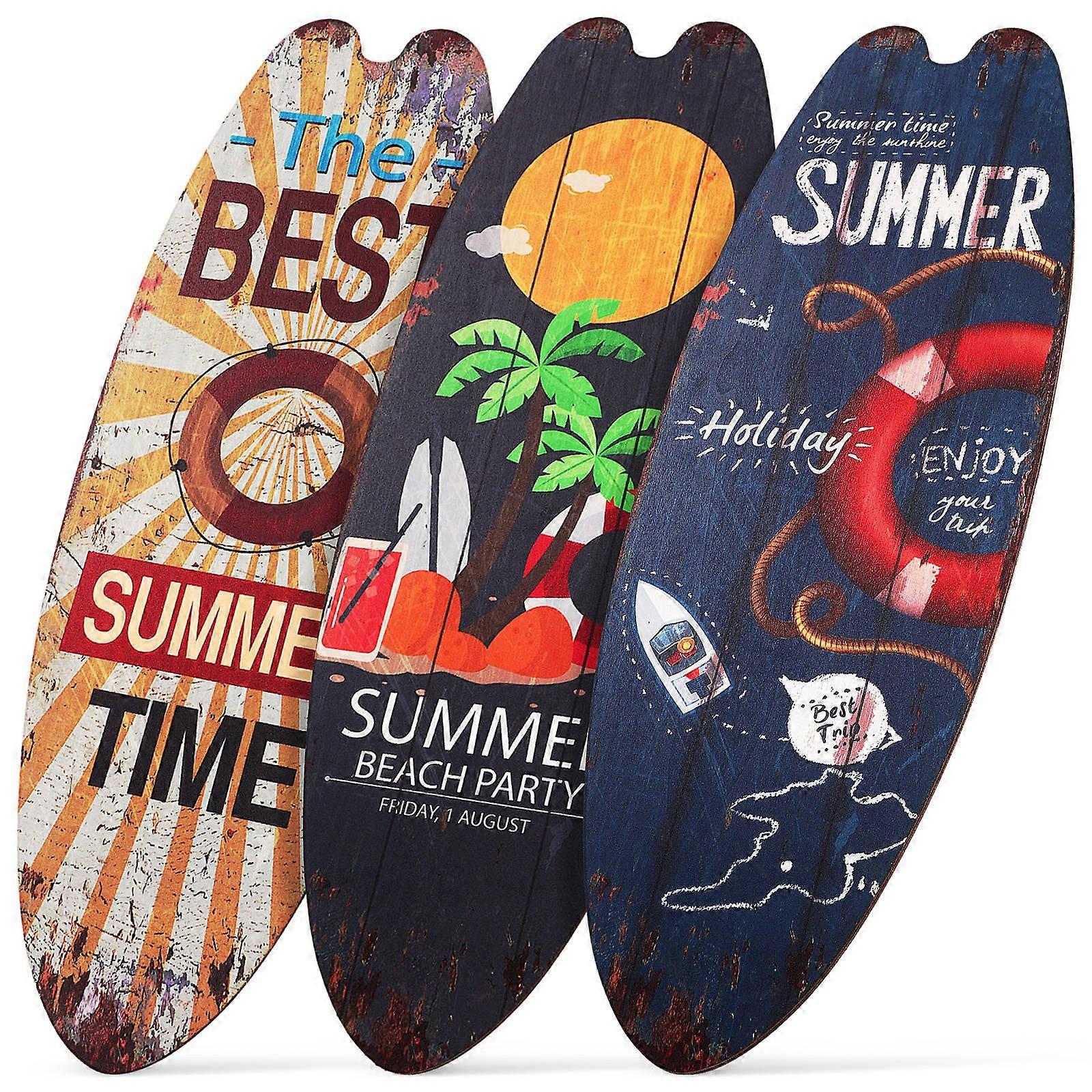 3pcs Surfboard Shape Wall Signs Summer Beach Decor Home Outdoor Rustic Ornaments Poolside Beach House Wall Art