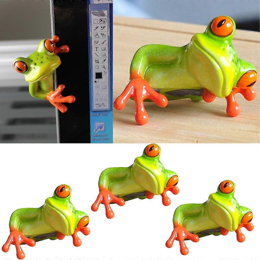 3Pcs Resin Creative 3D Craft Frog Figurine Office Desk Computer Decoration