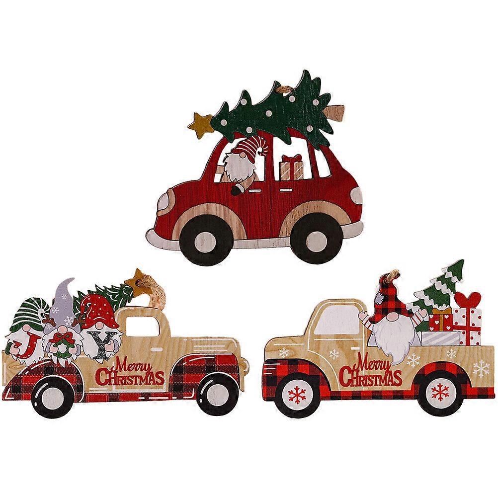 3Pcs Christmas Wood Pendant Christmas Ornaments Lovely Xmas Car Pendant Wooden Car Cutout