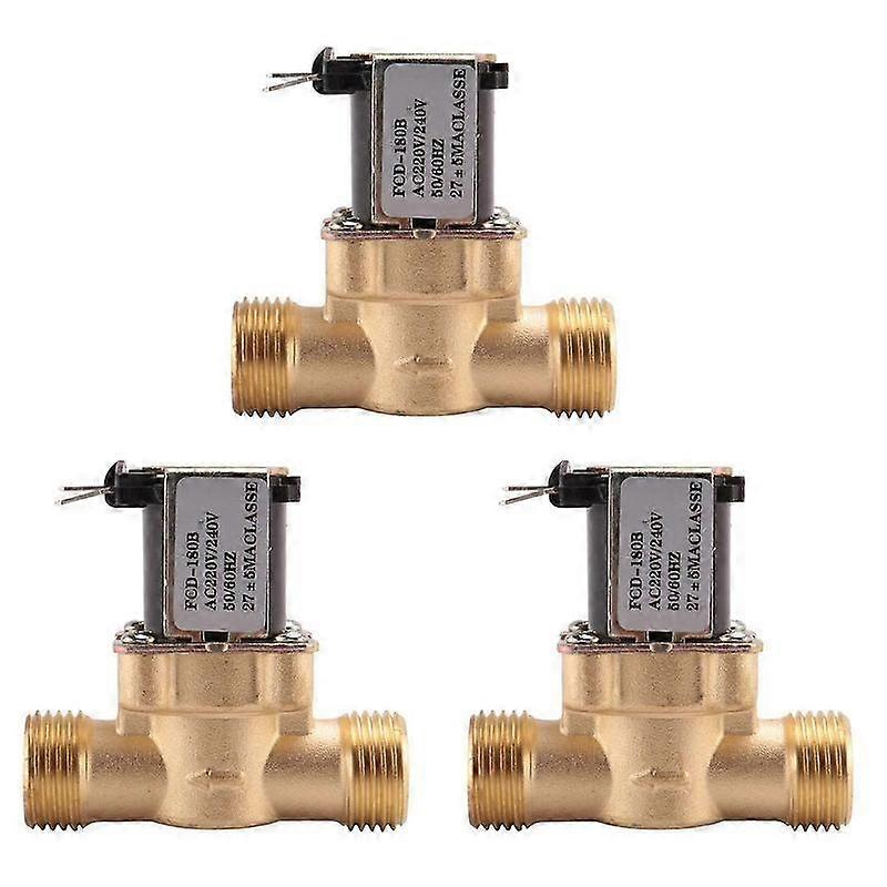 3pcs 1/2 Inch Ac 220V Normally Closed Brass Electric Solenoid Magnetic Valve for Water Control Chemi