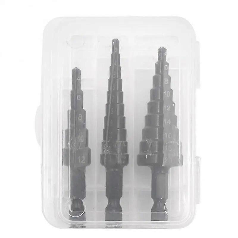 3Pcs 3-12mm 4-12mm 4-20mm Drill Bit HSS Straight Groove Step Set Titanium Coated Wood Metal Hole Cutter Core Drill Bit Set Tools