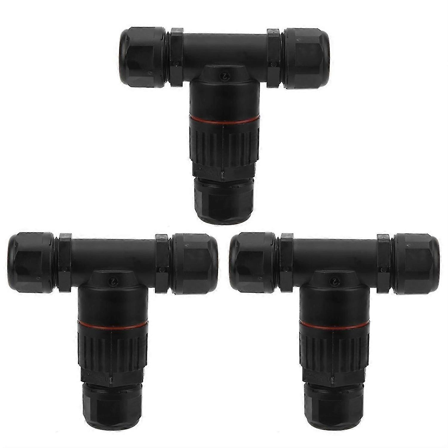 3Pcs IP68 Waterproof Connector Electrical Cable 3 Way T Shape Outdoor Industrial Wire Middle Waterpr