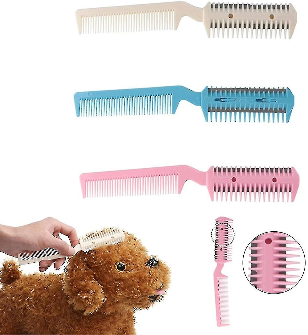 3 Pcs Pet Grooming Comb, Pet Hair Trimmer Comb With 2 Blades Grooming Razor Cut Cutting