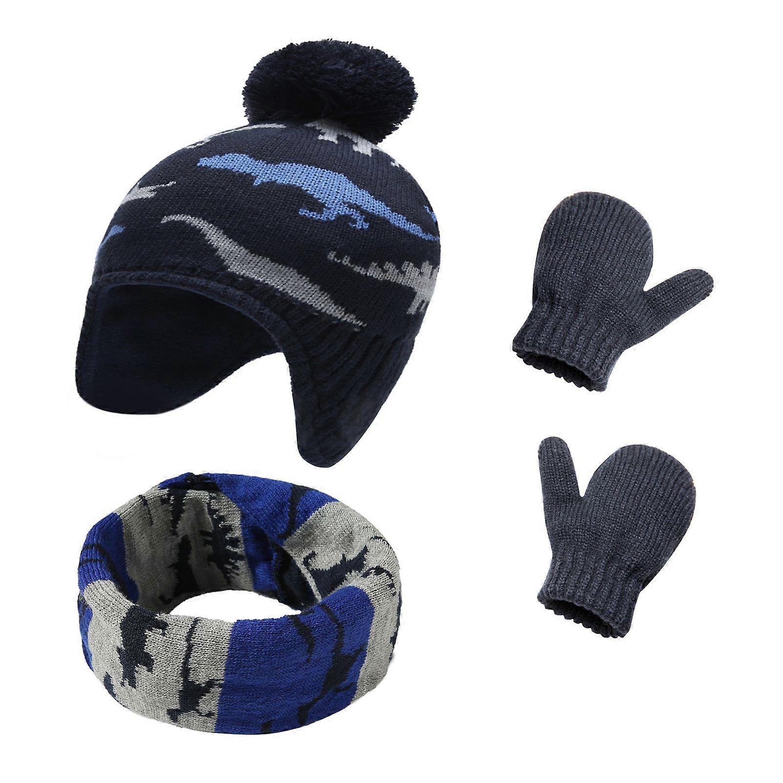 3 Pcs/Set Children Hat Neck Warp Gloves Set Thickened Printing Knitted Anti-slip Heat Retention Windproof Keep Warm Girls Boys Outdoor Scarf Gloves Be