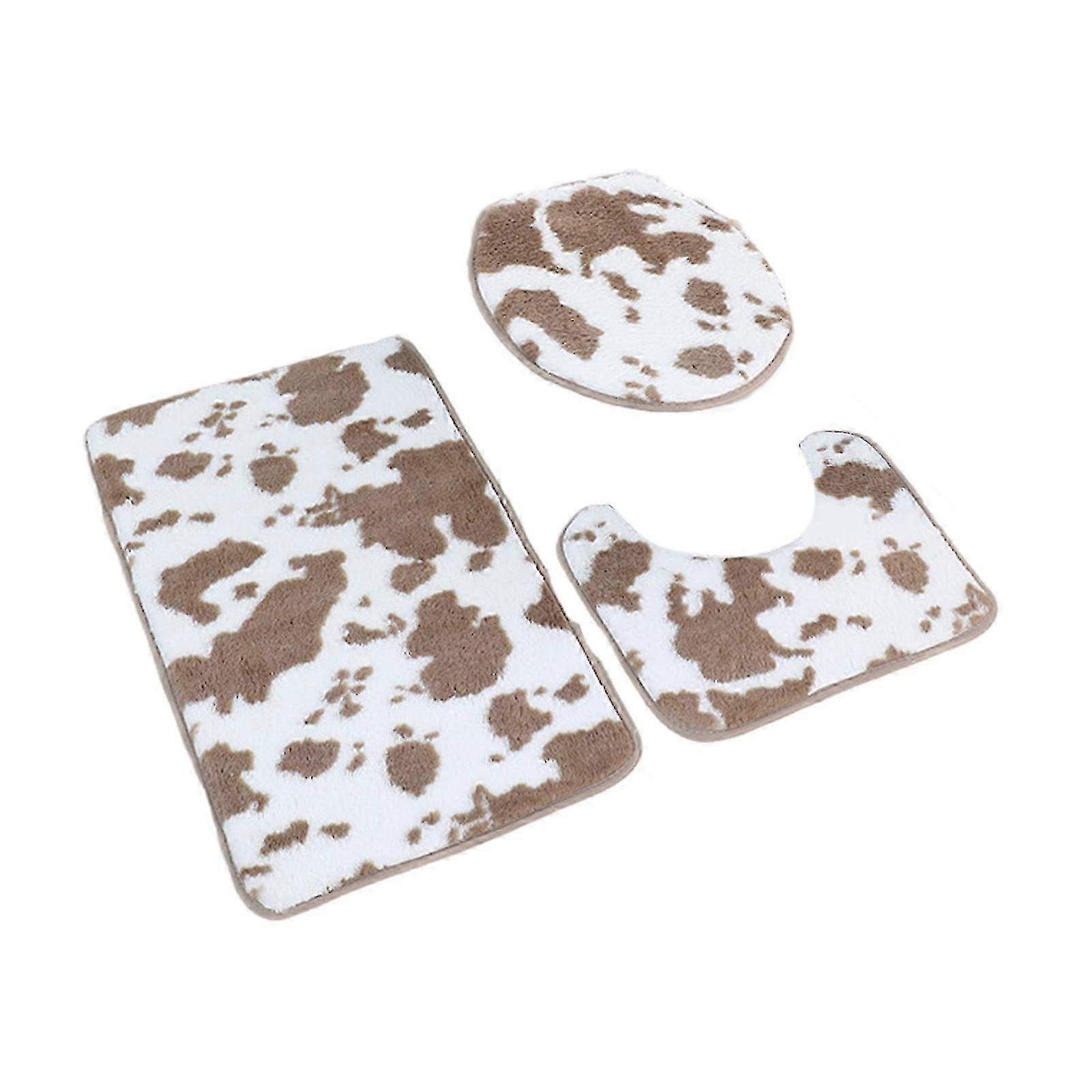 3 Pcs/Set Bathroom Floor Mat Non-slip Super Absorbent Cow Color Thickened Tufted Fall Winter Thermal Insulation Floor Carpet Toilet Cover Pa