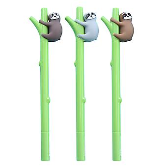 3 PcsNovelty Gel Pen Blue Gel Pen 3D Sloth Figures Design 0.5mm Signature Pen