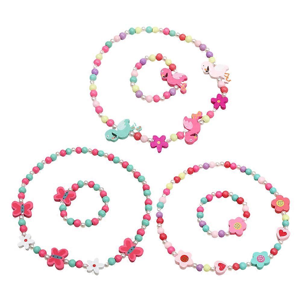 3 Sets Juegos De Ropa Para Nia Girl Beaded Bracelet Kids Beaded Bracelet Kids Wooden Necklace Beaded Necklace