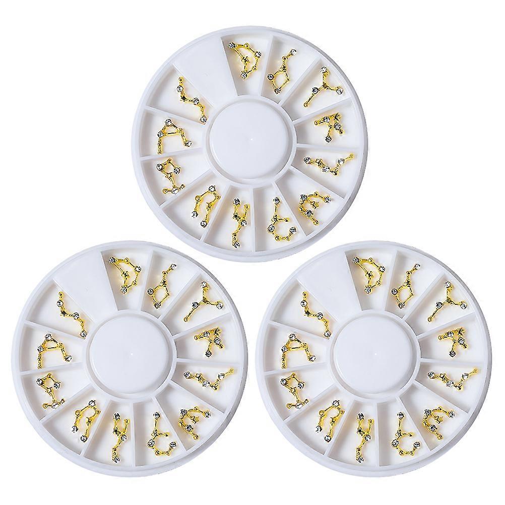 3 Boxes Zodiac Nail Charms Rhinestone Nail Gems for Phone Case Decoration Scrapbook DIY Accessories