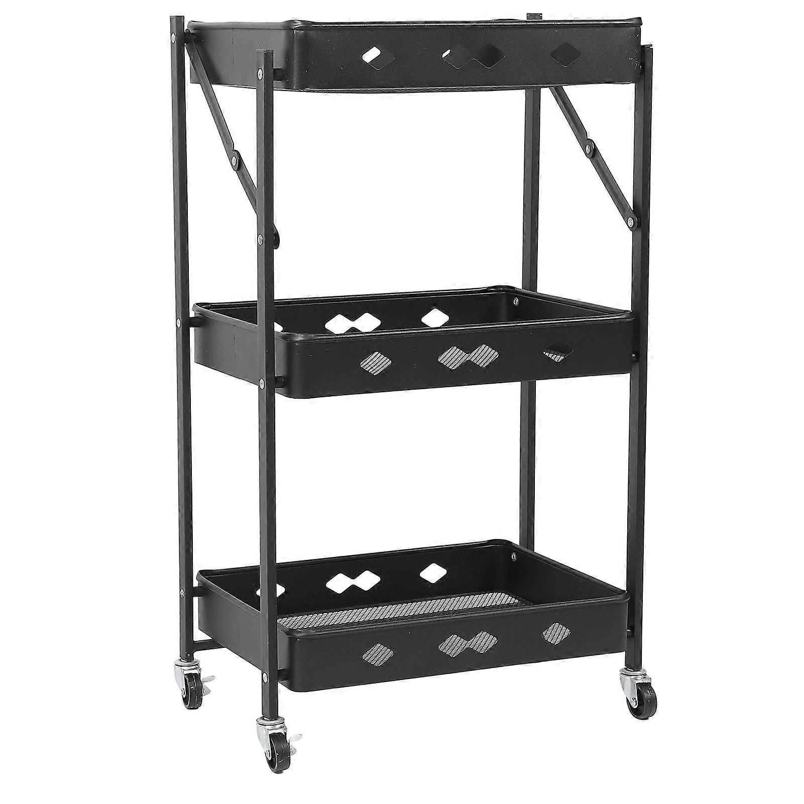 3 Tier Rolling Cart Carbon Steel Foldable Mobile Utility Cart Kitchen Storage Shelving with 4 Wheels for Living Room Office