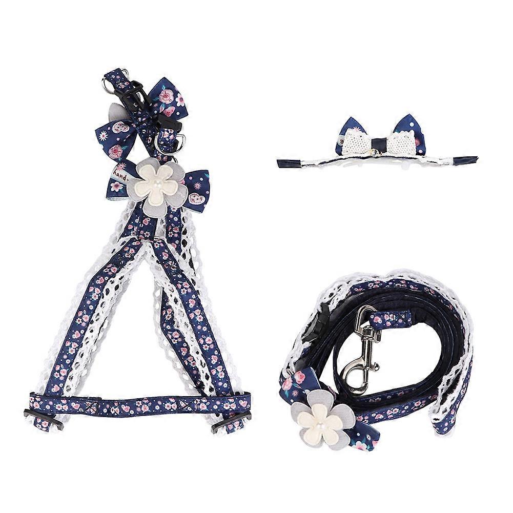 3pcs Pet Dog Thoracodorsal Strap Hair Band Leash Traction Rope Floral Set for Walking(Blue S)
