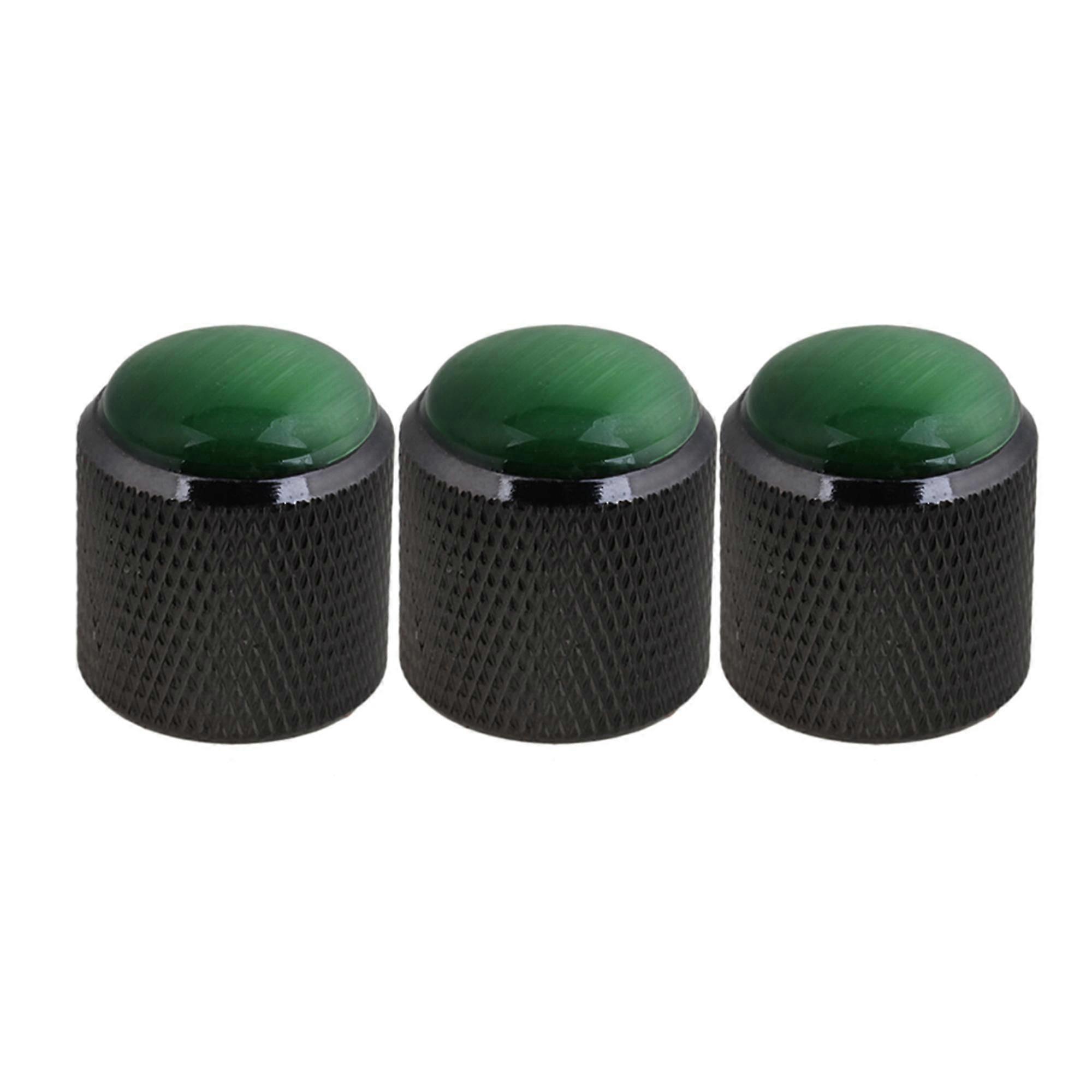 3 x Green Glass Head Practical Electric Guitar Black Dome Knobs Alloy