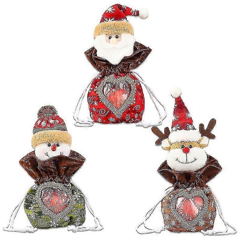 3 Santa Claus Snowman Doll Apple Boxes Christmas Eve Christmas Fruit Bags Gift Bundle Mouth Transparent Fabric Apple Bags