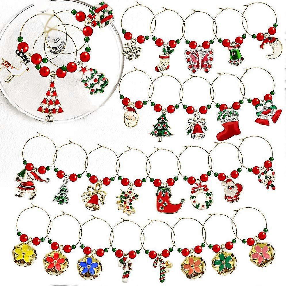 30 Pieces Of Christmas Wine Glass Pendants, Wine Glass Markers, Wine Glass Drink Markers, Christmas Themed Bar Table Decorations