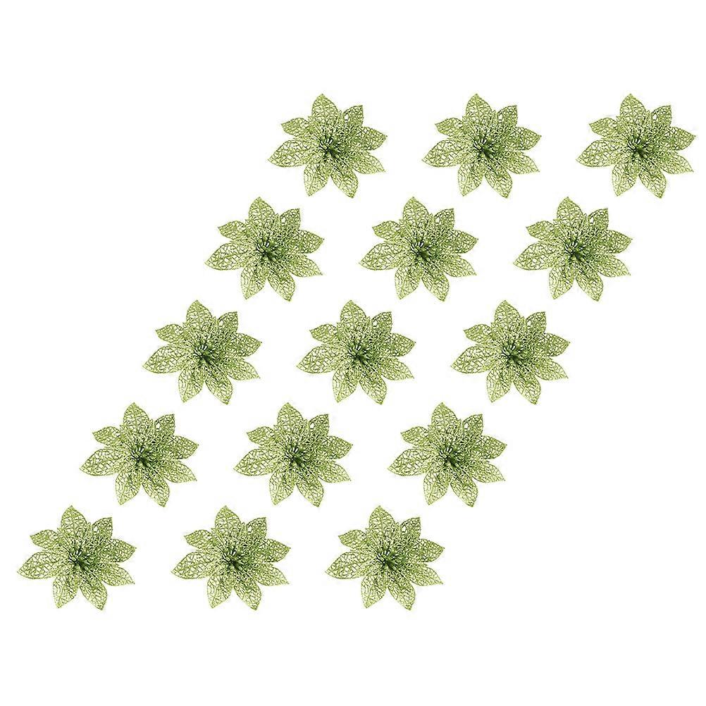 15Pcs Green Glitter Poinsettia Christmas Tree Ornaments Artificial Flowers Christmas Tree Poinsettia for Xmas Holiday Wedding Party - Material: - Size: 5. 89X5. 89X0. 98inch - Color: Light Green. Package list: 2 pcs christmas flowers