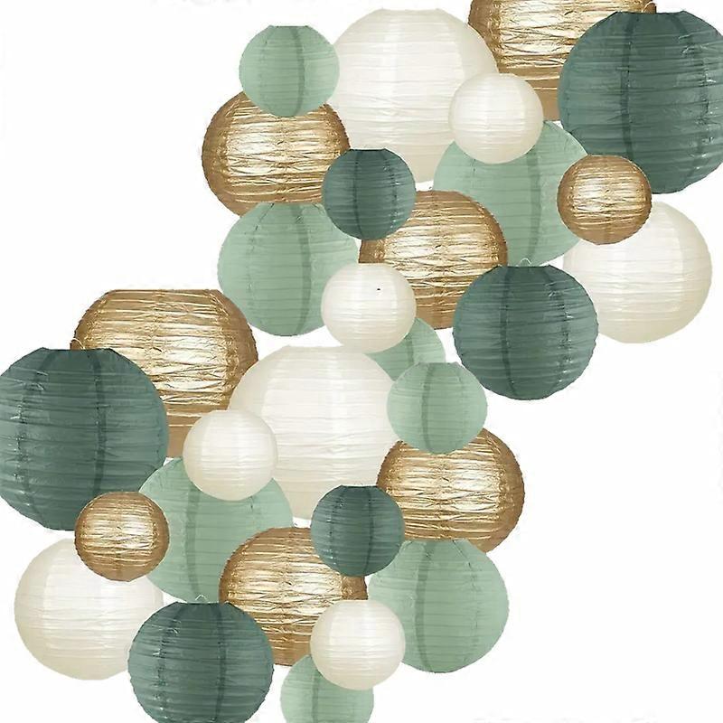 30Pcs Sage Paper Lantern Decoration, Round Hanging Paper Lantern Decoration Country Party Bride Gift Party Wedding Gray Green Birthday Party