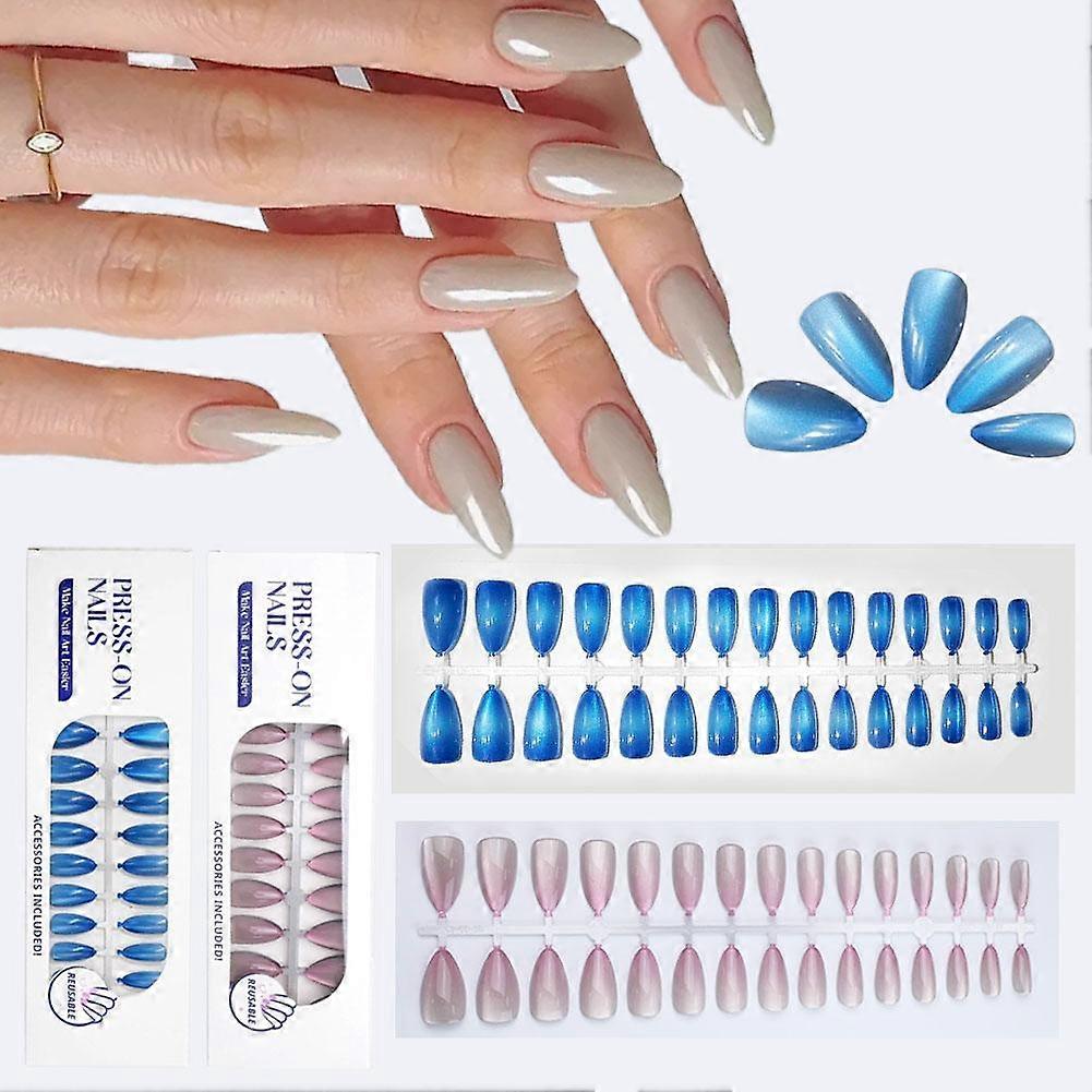 30PCS French Gel Nail Tips Short Press on Nails Cat Eye Glitter False Nail
