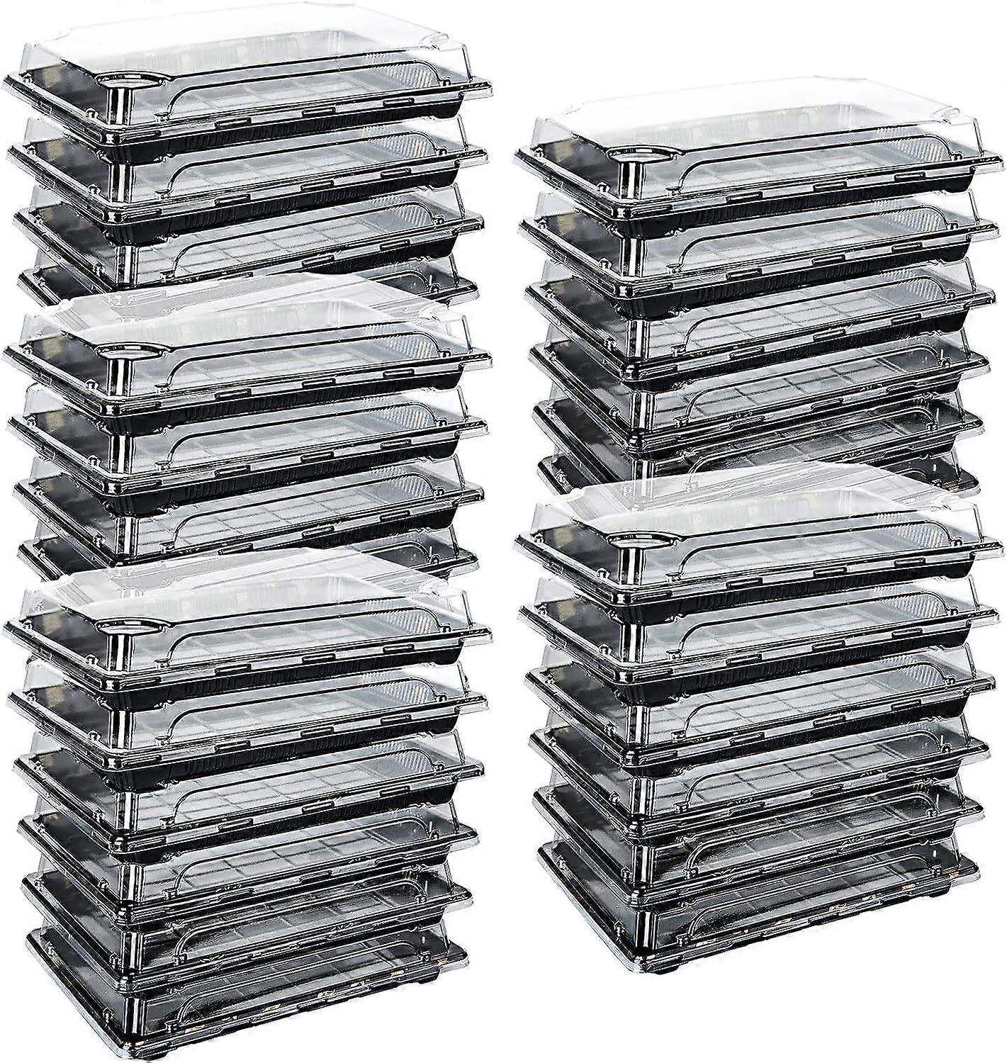 30 Pcs Reusable Small Plastic Buffets Catering Trays with Lids, 247mmx156mm Sweet Treat and Sandwich Platter Trays, Black Pattern Base Food Containers