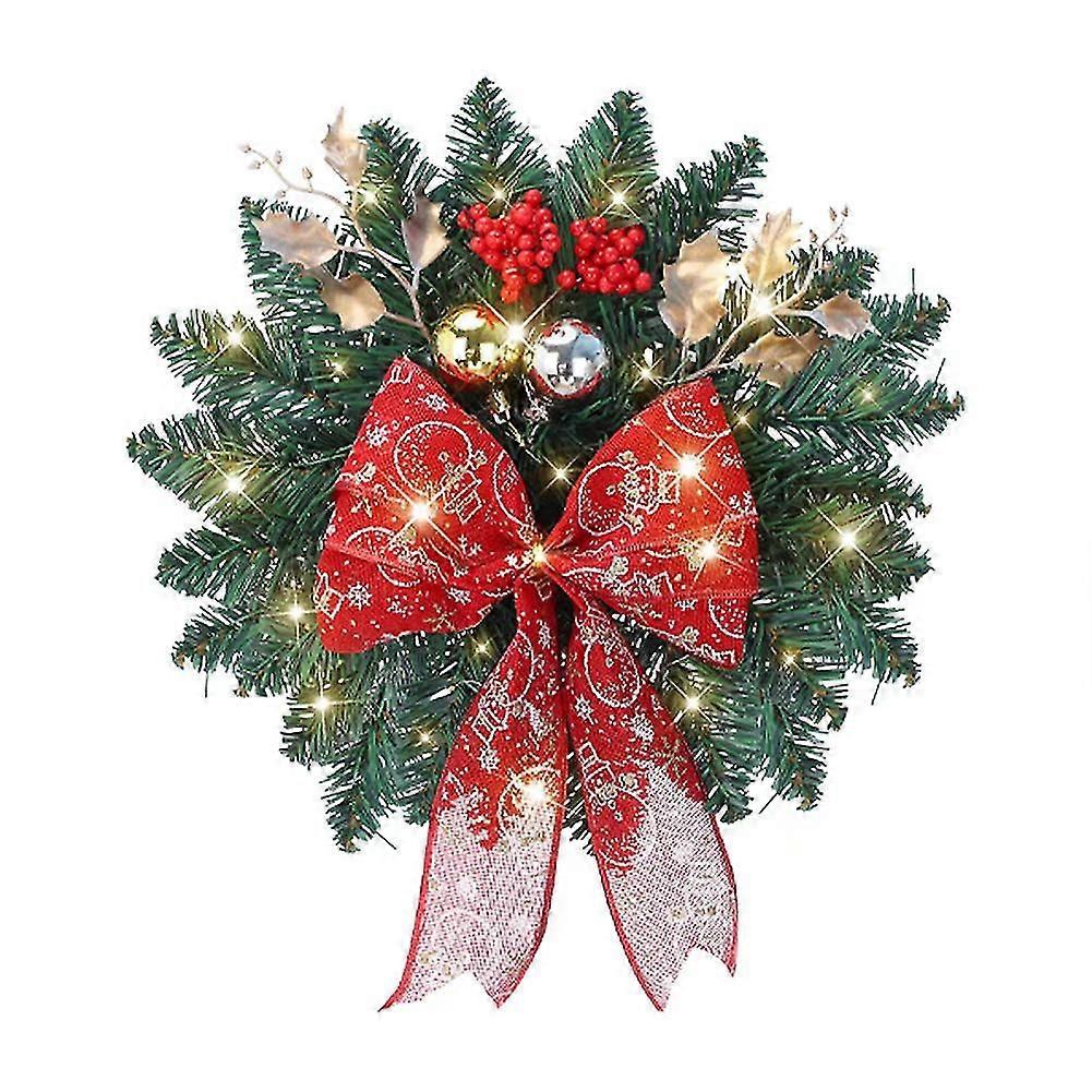 30cm Artificial Christmas Wreath Led Christmas Rattan Wreath Ornament Glowing Bows Christmas Garland Rustic Christmas Front Door Pendant