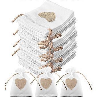 30 pieces of 10x14 cm burlap drawstring gift bags featuring a heart pattern suitable for various occasions