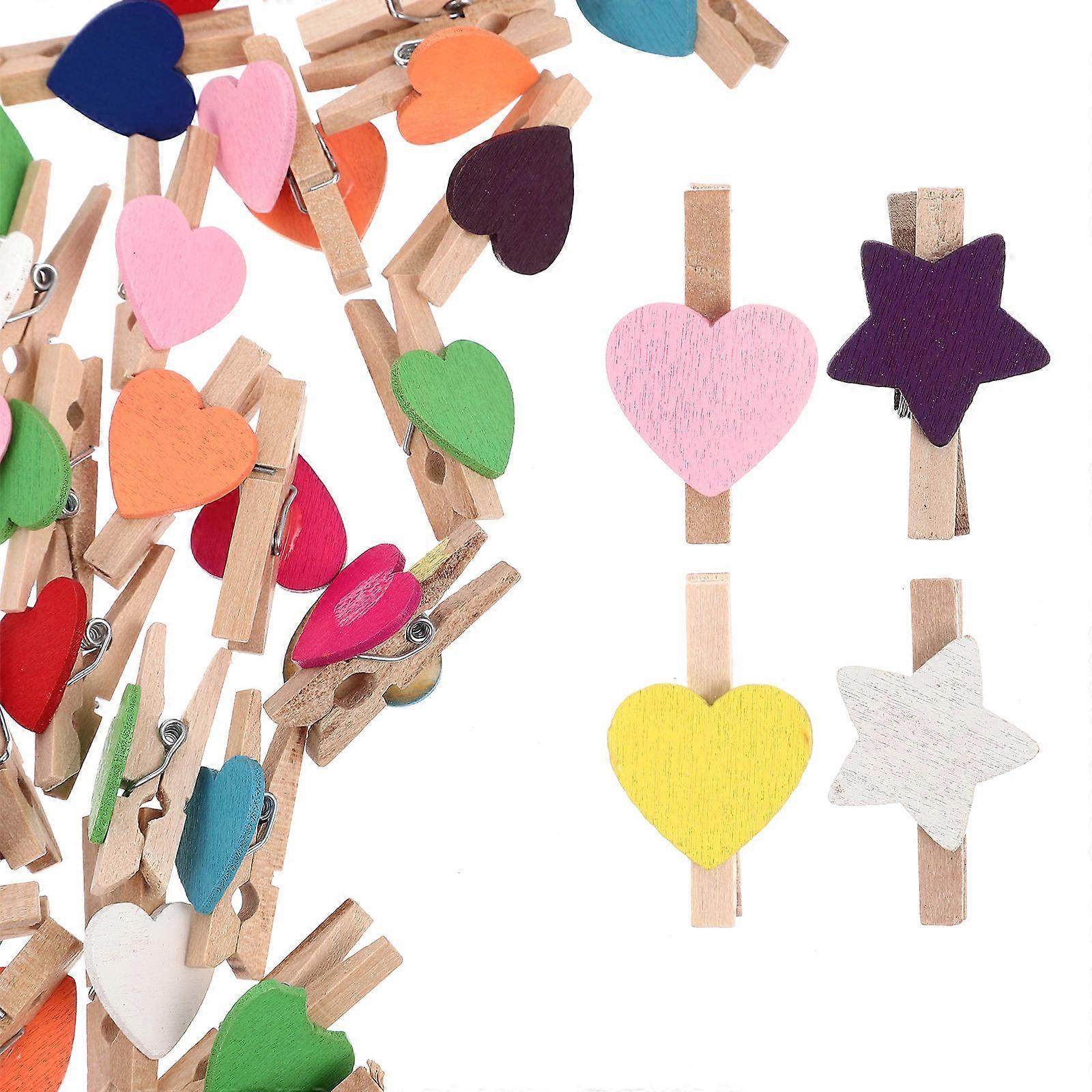 Colorful Wooden Clips 300Pcs Multi-Purpose Clothespins For Home Use Heart And Star Shapes Perfect For Clipping Cards
