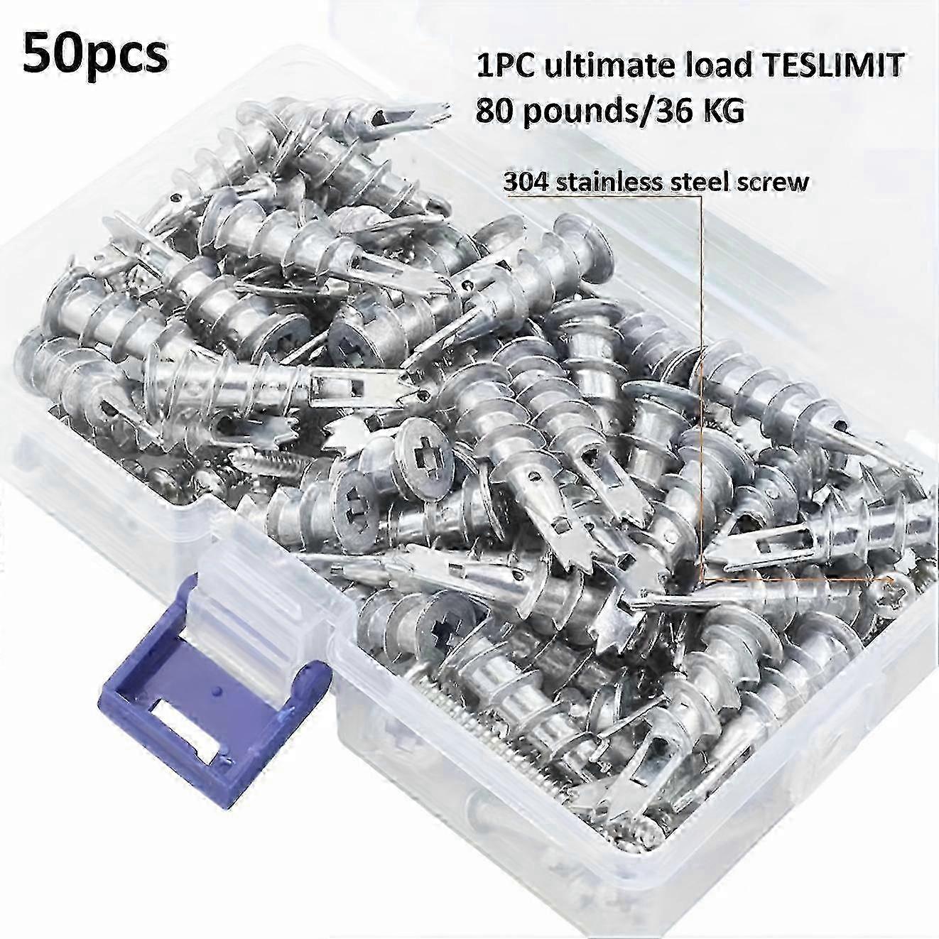 30/50pcs Zinc Self-Drilling Drywall Anchors With Screws Kit, 25/50 Heavy Duty Metal Wall Anchors And 25/50#8 X 1.38inch 304 Stainless Steel Screws 202