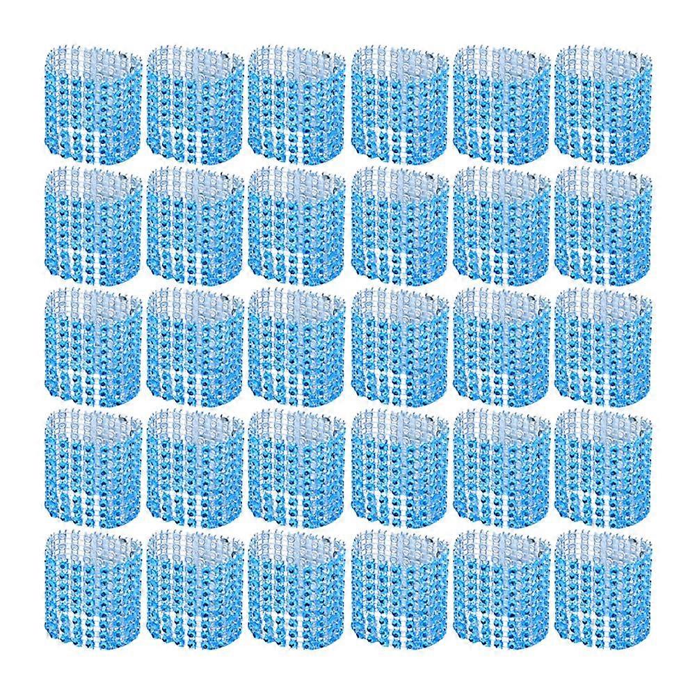 30PCS Elegant Napkin Ring with 8 Row Rhinestone Pretty Napkin Holder Napkin Buckle Decoration for Wedding Party (Lake Blue)