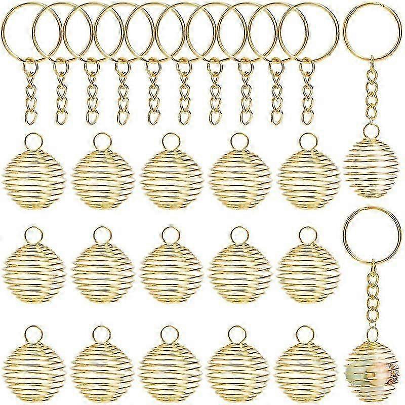 30pcs Stone Holder Charm Spiral Cage Beads Bulk Golden Metal Iron Round Hollow Crystals For Jewelry Making Charms Diy