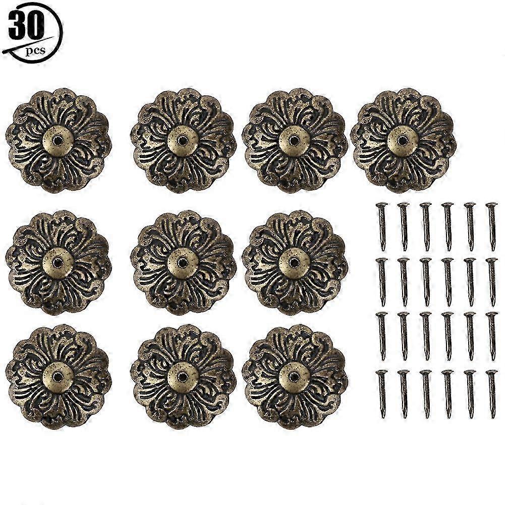 30Pcs Upholstery Nail Retro Flower Shape Cyan Bronze Zinc Alloy Furniture Hardware Accessories