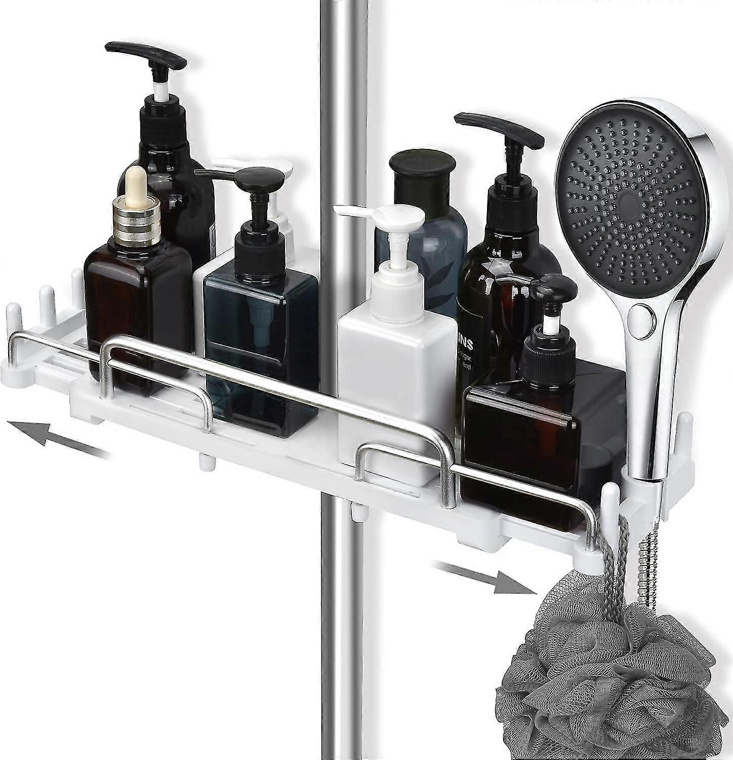 Telescopic Shower Shelf 32-48cm, Hanging For Bathroom Without Drilling, Storage Shelf For 18-25mm Shower Bar (white)