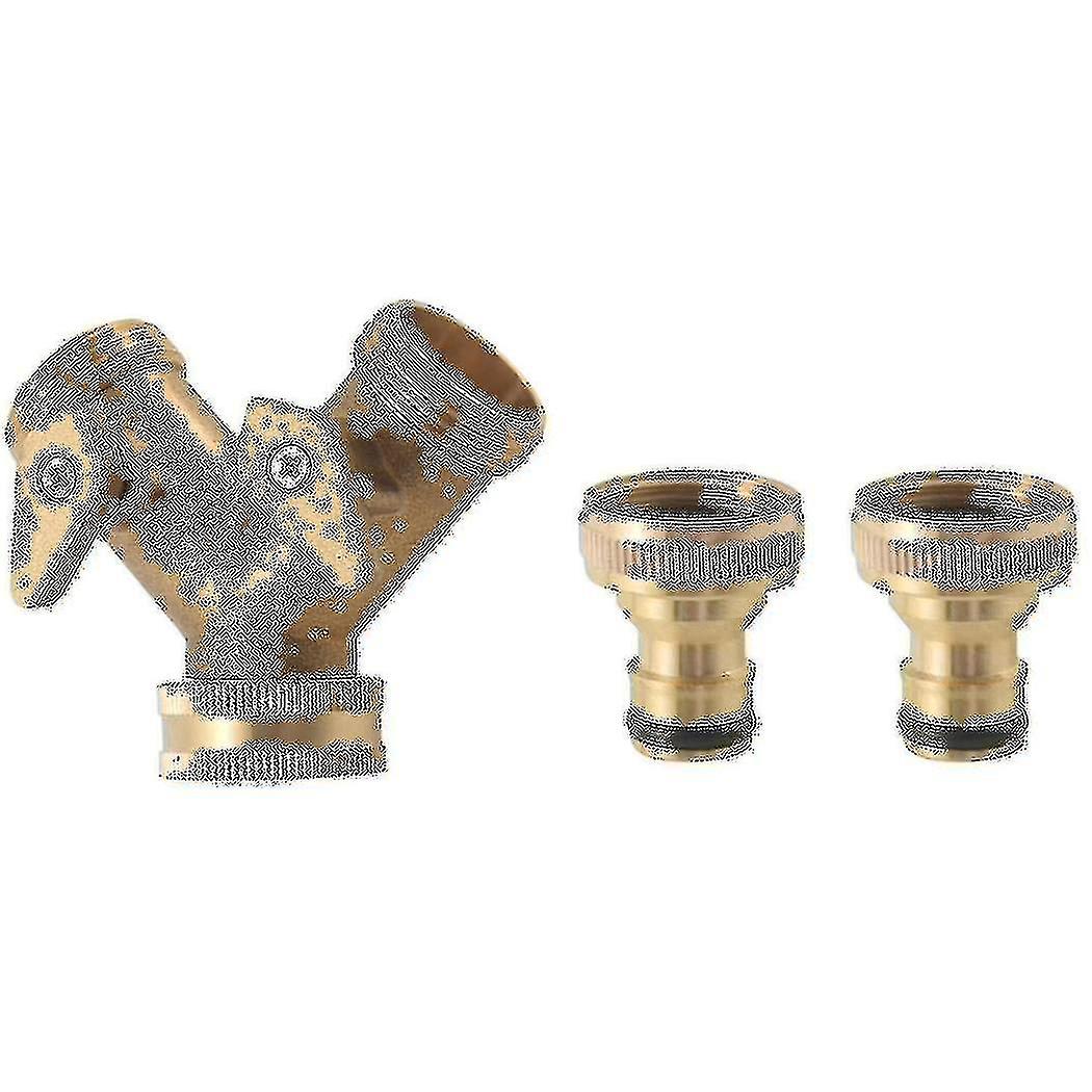 3/4 Inch 2 Way Hose Splitter Brass Y Valve Garden Tap Connector With 2 X3/4 Inch Brass Water Tap Ou
