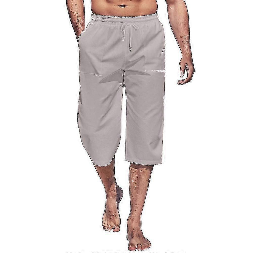 Men's Capri Pants Lightweight Loose 3/4 Shorts Drawstring Elastic Waist Casual Beach Yoga Trousers Material: Cotton Blend Package included: 1 x Men's Shorts Note Please allow 2-3 cm difference due to manual measurement. Besides different computers display colors differently, the color of the actual item may vary slightly from the below images, thanks for your understanding(1 inch = 2.54 cm)