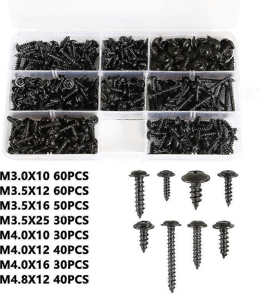340pcs Self-drilling Black Sheet Metal Screw, Stainless Carbon Steel Self