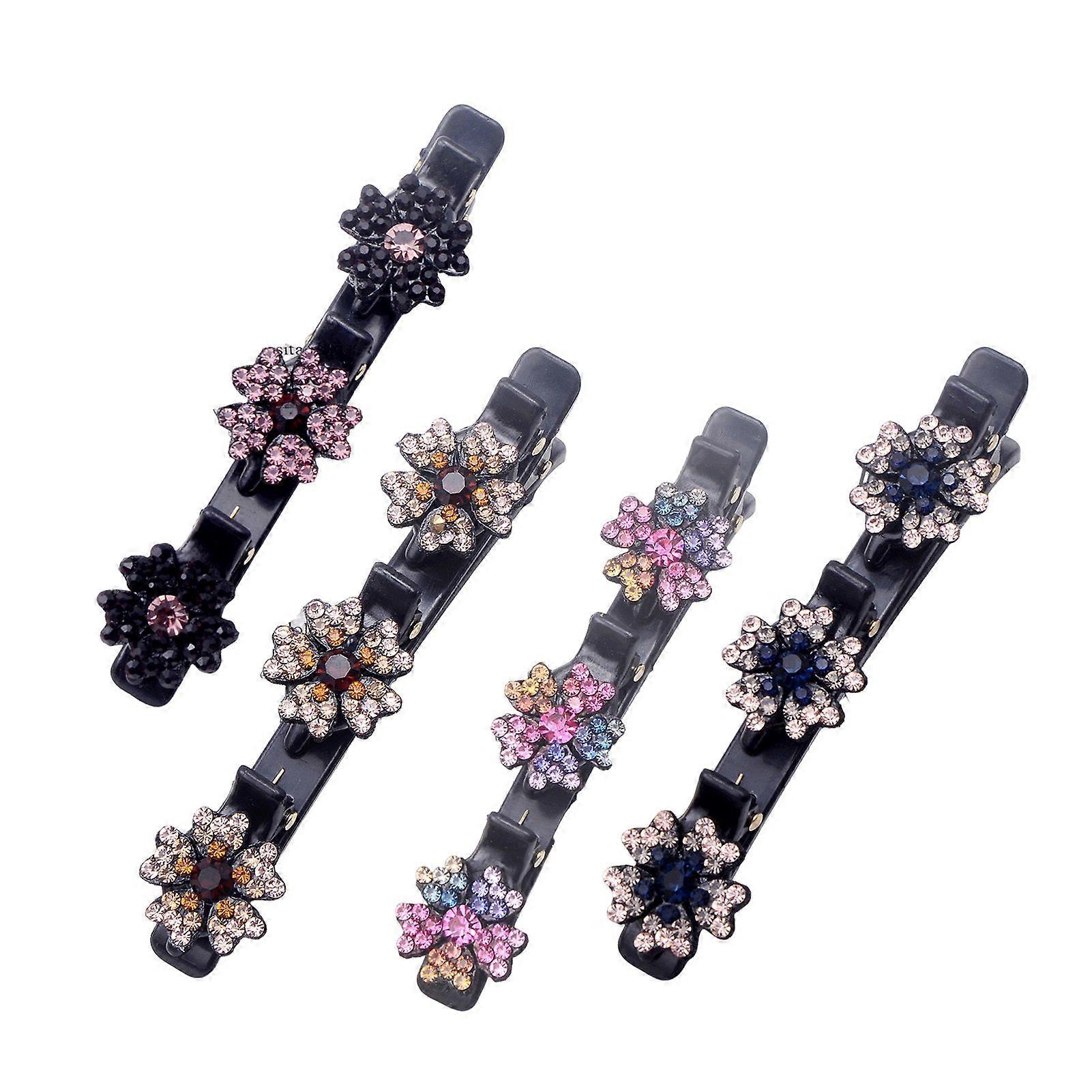 3/4/5Pcs Sparkling Faux Crystal Stone Braided Hair Clips Double Layer Women Hair Pins Anti-slip Teeth Hair Styling Tools