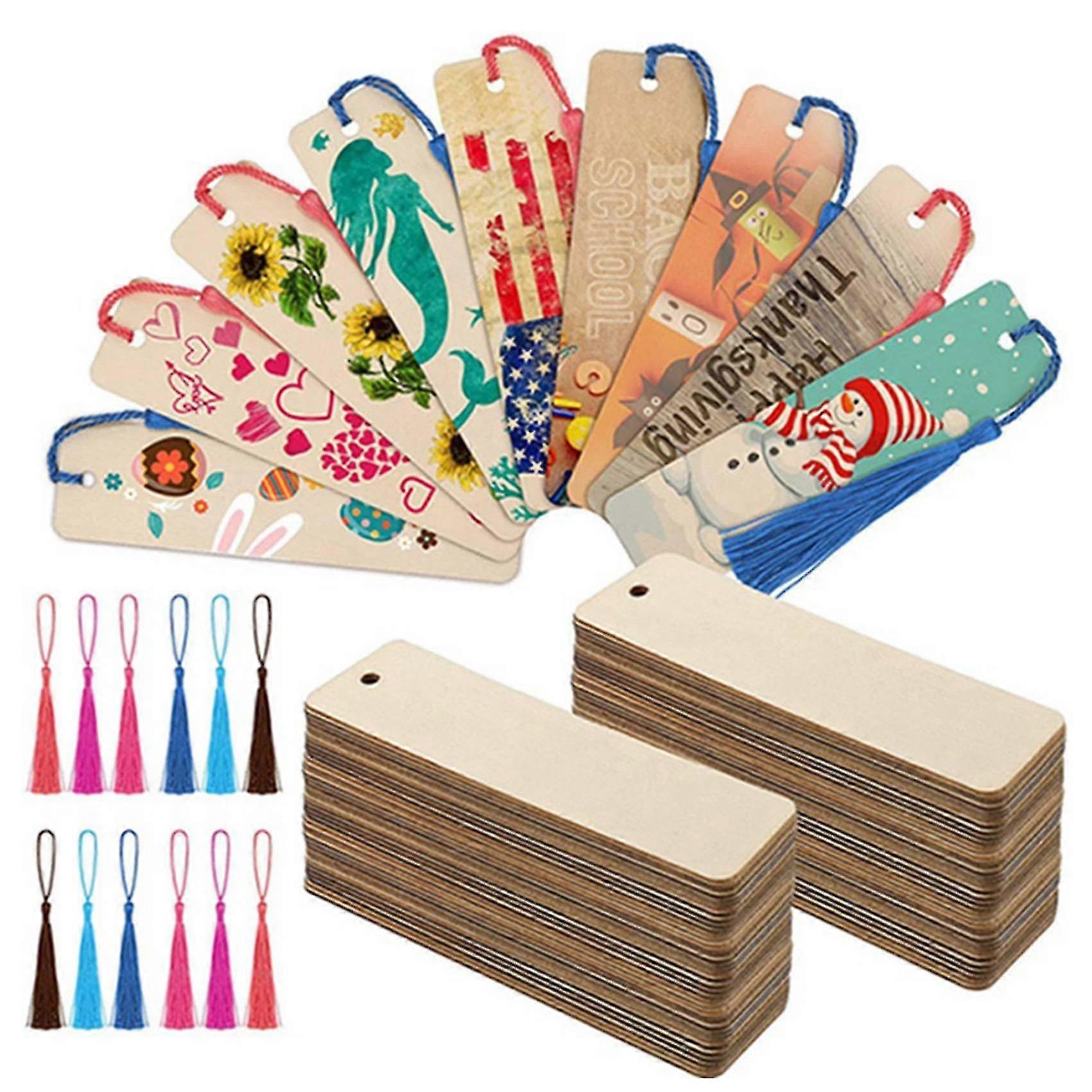 36 Pieces Of Wooden Bookmarks Diy Blank Wood Chips Wooden Bookmarks Thin Hanging Labels Wooden Tass -Aya