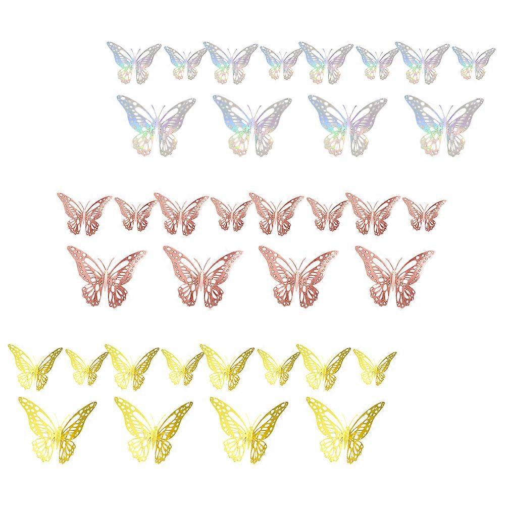 36Pcs Metal Butterfly Wall Sticker for Decor Colored Mini 3D Hollow Pattern