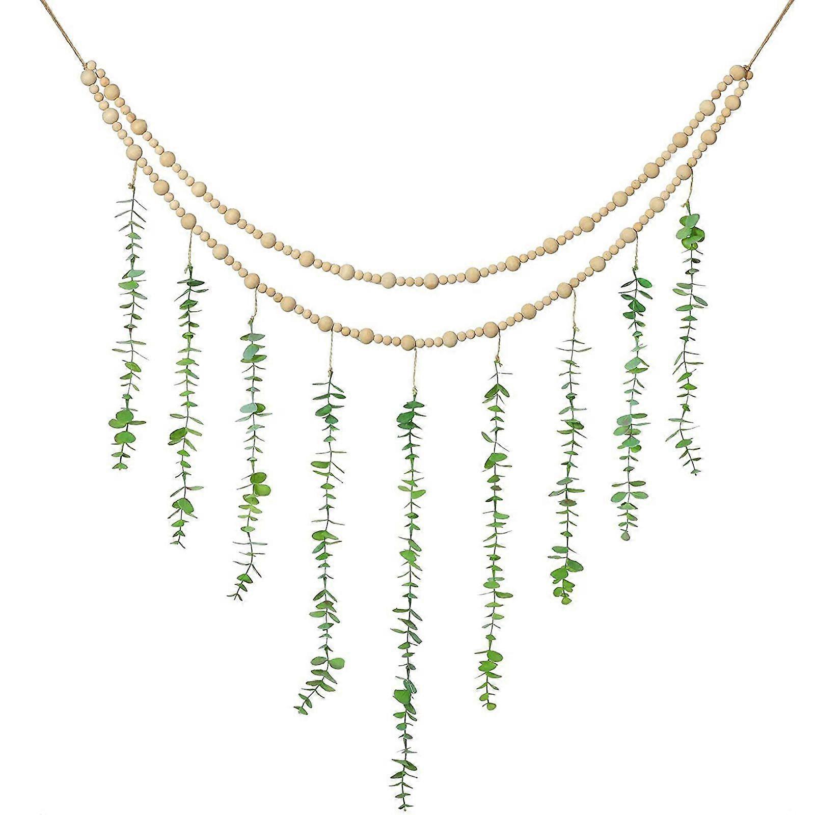 36 x 36 Inch Hanging Eucalyptus Boho Wall Decor Large Boho Bedroom Wall Hanging Wooden Bead Garland Artificial Eucalyptus ,100% New
