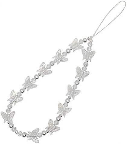 38cm Beaded Phone Charm, Smiley Face Beaded Phone Lanyard Wrist Strap Fruit Letter Pearl Rainbow Handmade Clay Beads Anti Lost Phone (White-Butterfly)