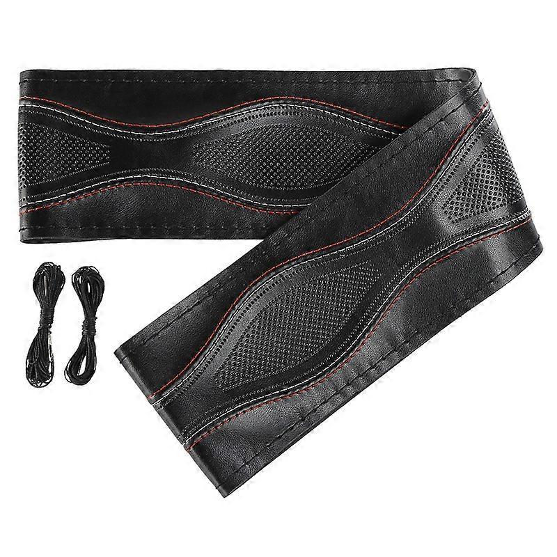 Braid on Steering Wheel Car Steering Wheel Cover with Needles and Thread Artificial Leather Diameter 38cm Auto Car Accessories