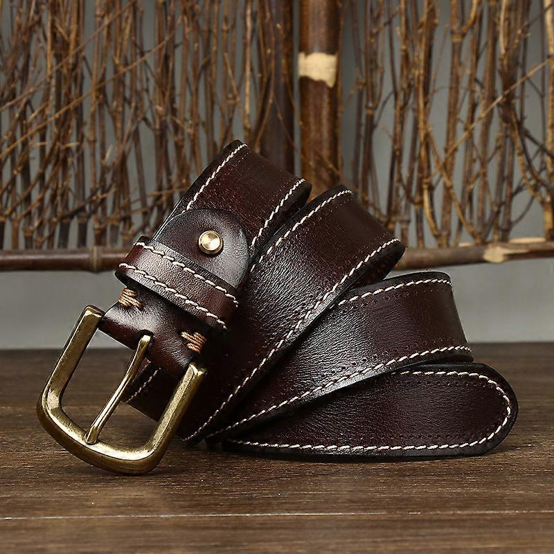 3.8cm Mens Cowskin Belts Luxury Full Grain Cowhide For Leather Belt High Quality Copper Buckle Male Strap For Jeans Cintos