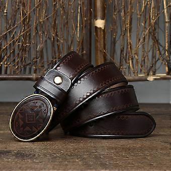 3.8cm Width Thick Men Retro For Leather Belts Copper Smooth Buckle Cowhide Business Belt High Quality Male Waistband