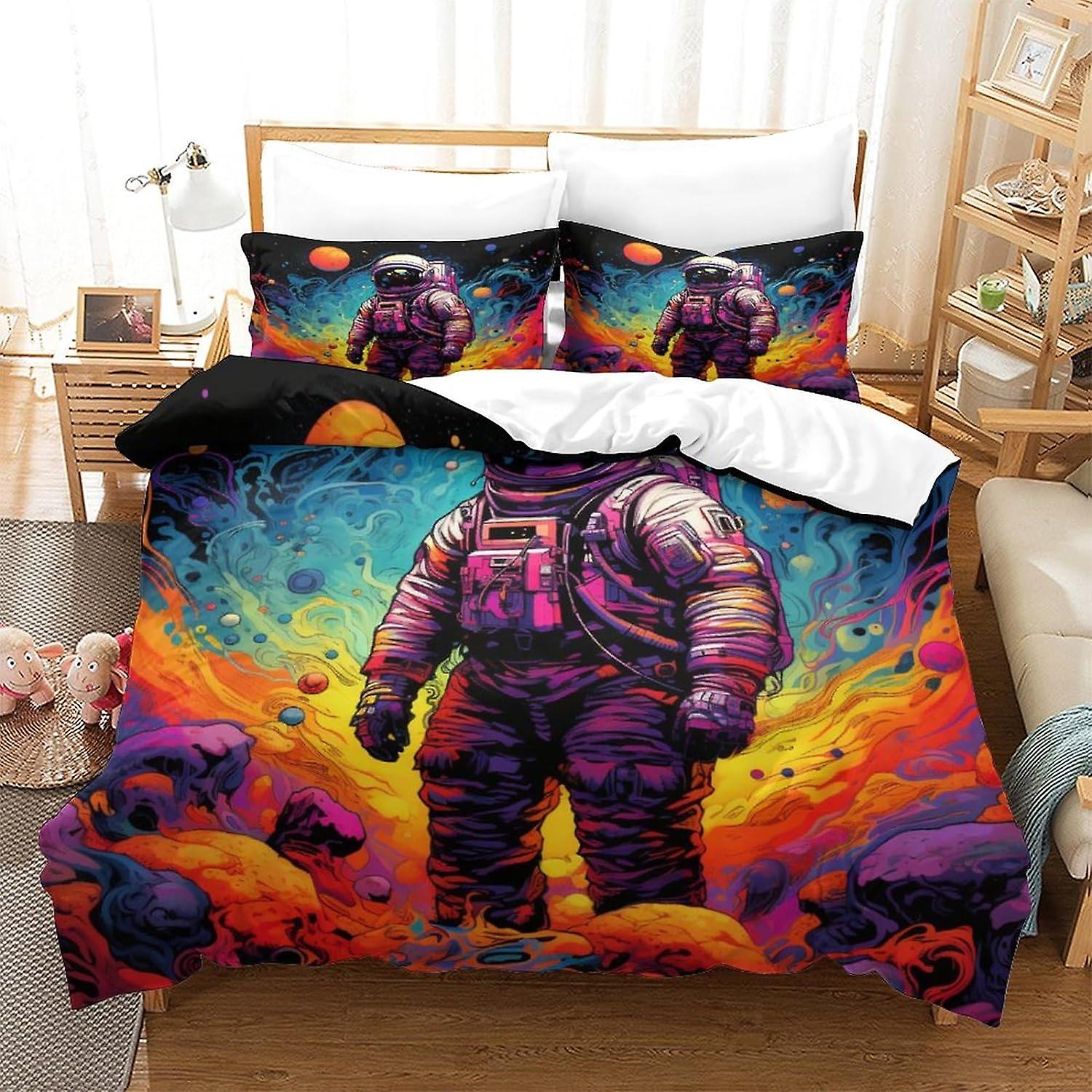 3D Astronauts Duvet Cover Stitch Bedding Cosmic Landscape Printing Quilt Cover with Pillowcase Father's Day Bedding Gifts King