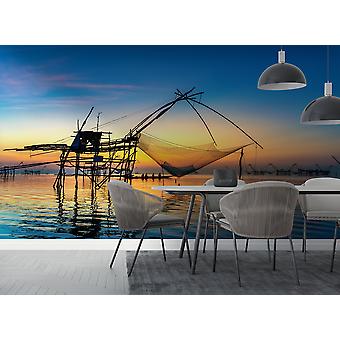 3D זריחה יפה דייג אגם קיר קיר טפט Gd 2381