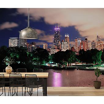 3D יפה שיקגו סיטי לילה סצנת קיר קיר טפט Gd 2346