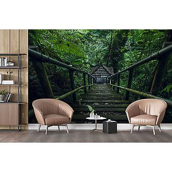 3D מדרגות ירוקות מגודלות יער קיר קיר טפט Gd 2197